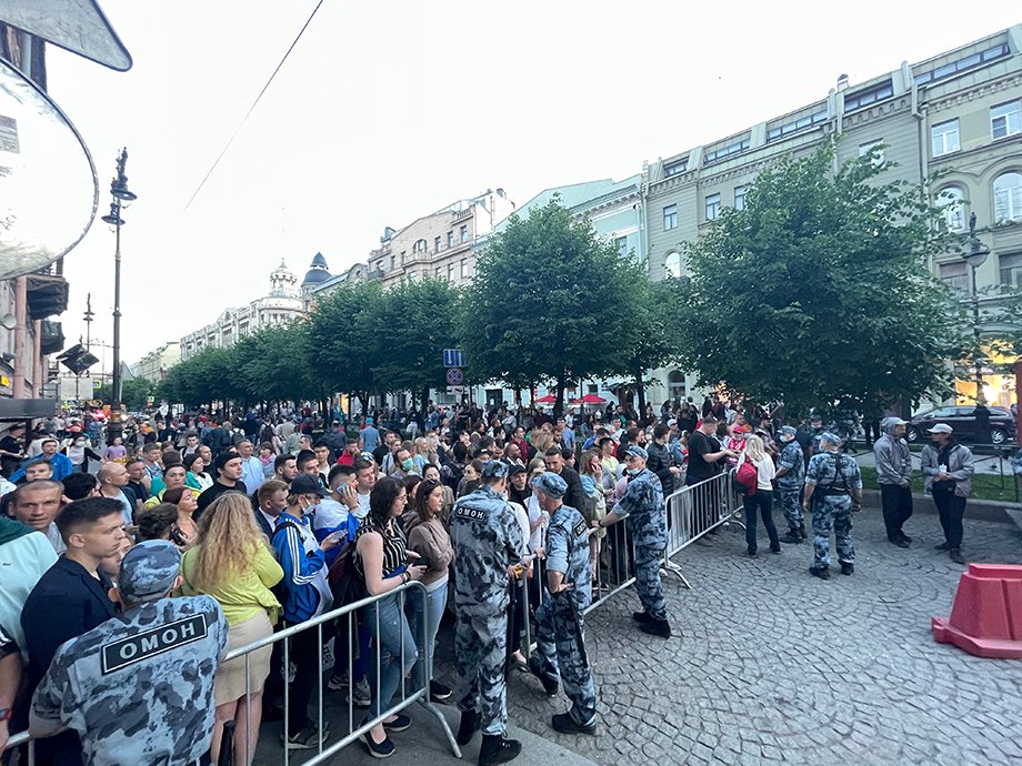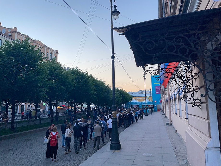 Из-за коронавируса чемпионат Европы проходит с ограничениями – стадион в Санкт-Петербурге на матче сборной России был заполнен лишь наполовину. Болельщикам предложили альтернативу – массовый просмотр матча в фан-зоне на Конюшенной площади. Для тех, кто попал, всё сложилось удачно (кроме счёта в игре), но попасть внутрь было сложно.
