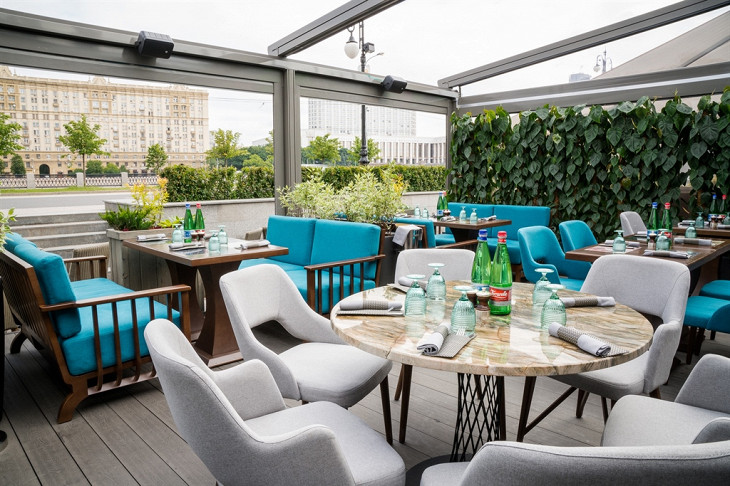 С обновленной веранды итальянского ресторана Il forno на Кутузовском проспекте, обладая хорошим зрением, можно детально разглядеть Москву-реку, Белый дом и башни «Москва-Сити». В этом сезоне веранда выдержана в серо-бирюзовой цветовой гамме, она вмещает 66 человек. На открытом воздухе в ресторане обещают трансляции матчей, для чего установили два больших экрана. Футбольных акций не будет, но сейчас запускают летнее меню и предложение с российскими винами.