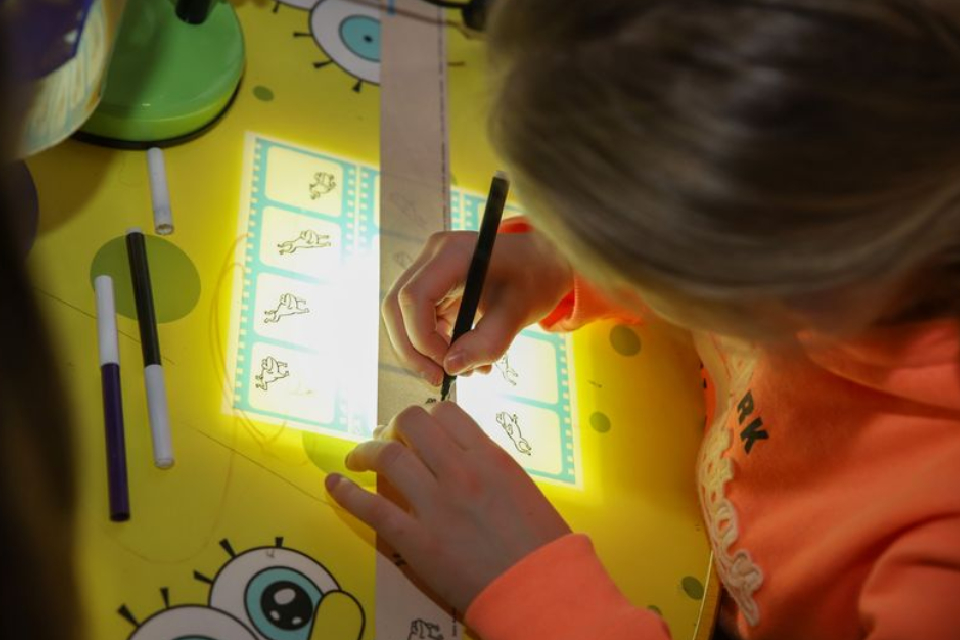 В павильоне каждый час проходят пятиминутные светотехнические шоу разной тематики. Здесь дети и их родители могут стать участниками таких программ, как «Времена года», «Мегаполис Москва», «История Москвы», «Архитектурные стили Москвы».