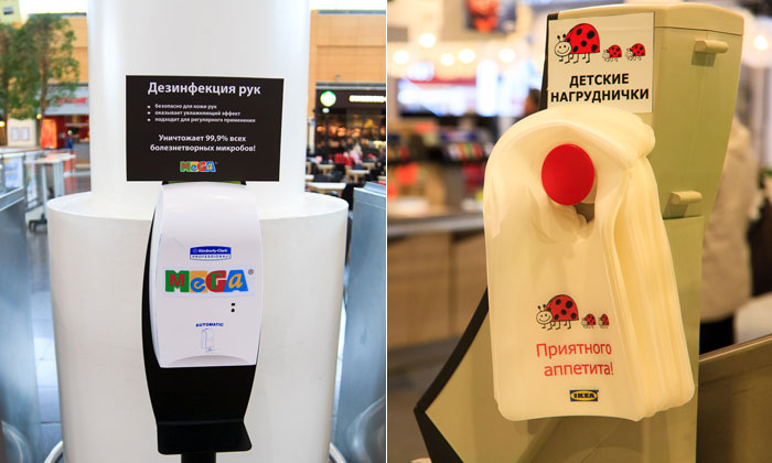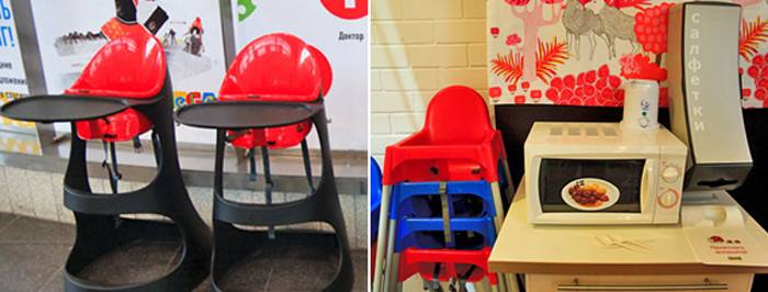 Стульчики для кормления, дезинфицирующий гель для чистых рук, а также комната матери и ребенка есть и со стороны «Ашана», в ресторанной зоне.