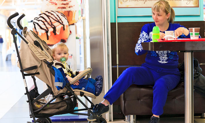 Но увы, шопинг молодой матери не бывает долгим – вскоре раздается телефонный звонок с призывным требованием кууушать от младшего члена семьи.