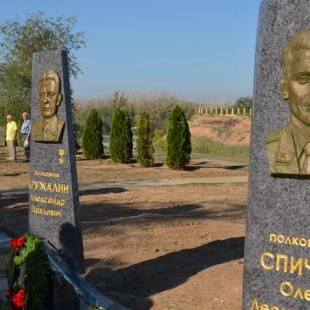 Мемориал погибшим летчикам-испытателям — это место на берегу реки Ахтуба самое красивое место города Ахтубинска. Огромное стальное крыло Икара и рядом четыре стелы, на черном мраморе которых вписаны имена погибших испытателей. Всего три памятника было выполнено гнутием нержавеющей стали кувалдами на пеньках. Среди них Рабочий и Колхозница» Веры Мухиной. Информация