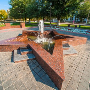 Фонтан Звезда Победы открыт в честь 65-летия со дня Победы над фашистской Германией. Летом в ночное время вода подсвечивается разноцветными огнями Информация
