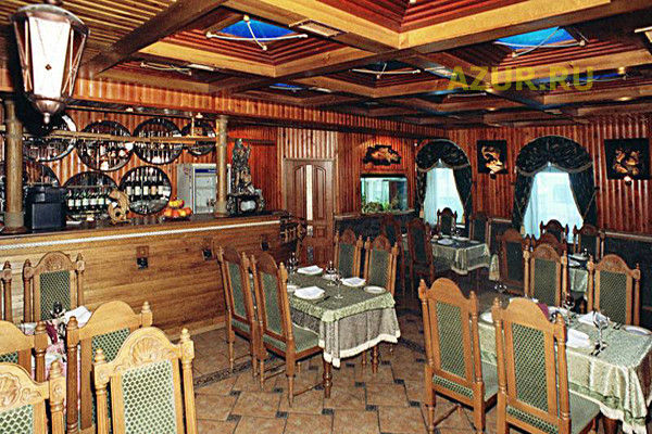 Кафешка устроена на набережной Назукина, самой живописной и красивой, стилизована под старинный трактир, но весьма просторно – одновременно может принять до 150 человек. В нем два зала плюс веранда в летний период.