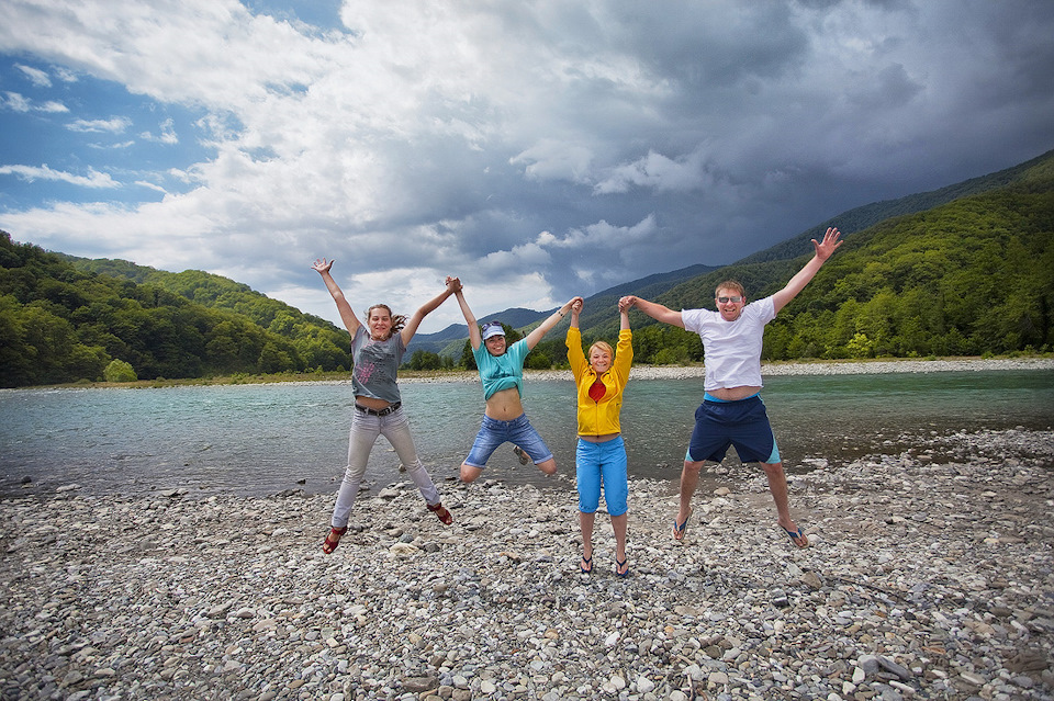 А мы тем временем на всех парусах гнали по горной реке, наслаждаясь брызгами прозрачной воды реки!