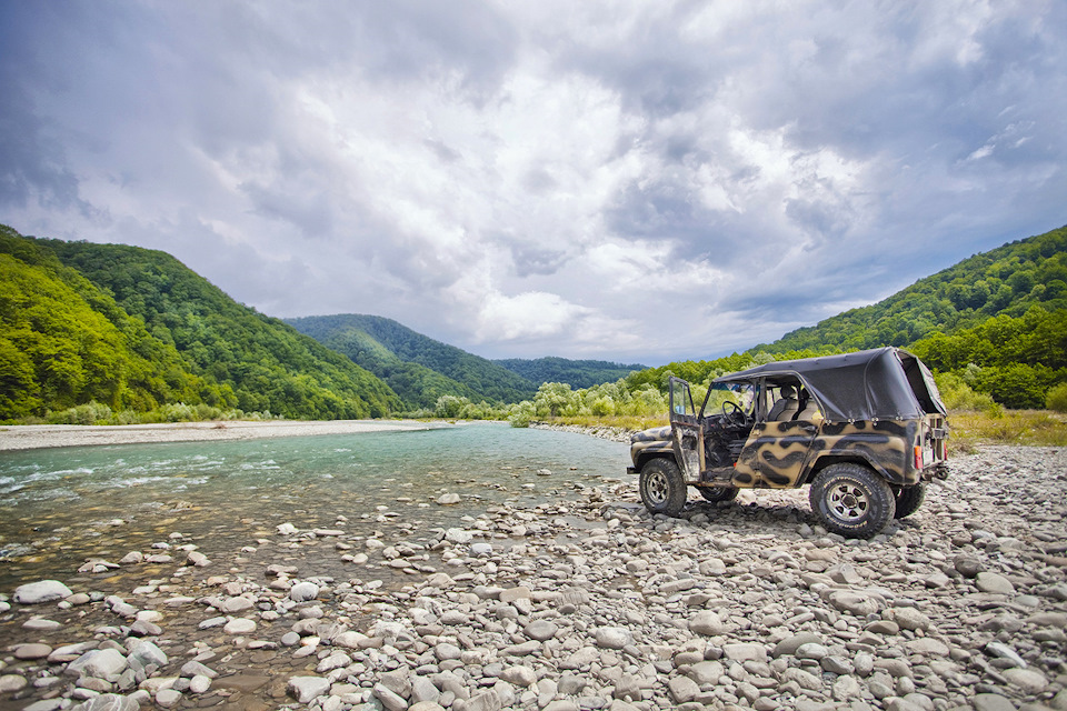 Вы просто договариваетесь с водителем на улочке близ центрального пляжа о поездке. Так сделали мы. А на следующий день отправились на УАЗике местного аксакала прямо по устью реки Шахе. Наш водитель Саша — бесстрашный малый, настоящий джигит — пер прямо по камням, воде и грязи — ничего не боялся ради нас и нашего удовольствия. Машина его — настоящий зверь!