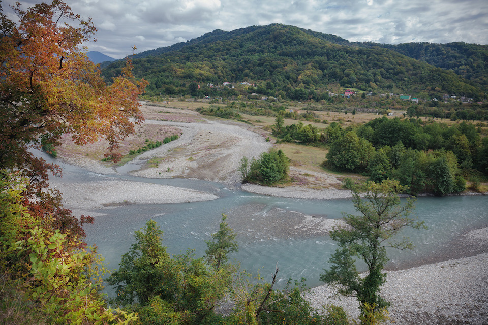 Так река Шахе выглядит в сентябре с обзорной площадки горного серпантина.