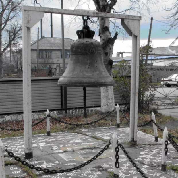 Маячный колокол установлен на постамент 8 мая 1980 года, в память о первых русских гидрографах Тихоокеанского флота. Колокол длительное время являлся оборудованием маяка Крильон, во время тумана, метели, вьюги подавал сигналы проходящим кораблям. В июне 1979 года колокол был снят. Колокол отлит русскими мастерами в 1895 году на Гатчинском заводе специально для маяка на Сахалин… Информация
