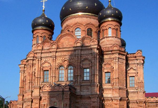 В 1879—1886 годах был построен каменный пятиглавый собор во имя Преображения Господня.