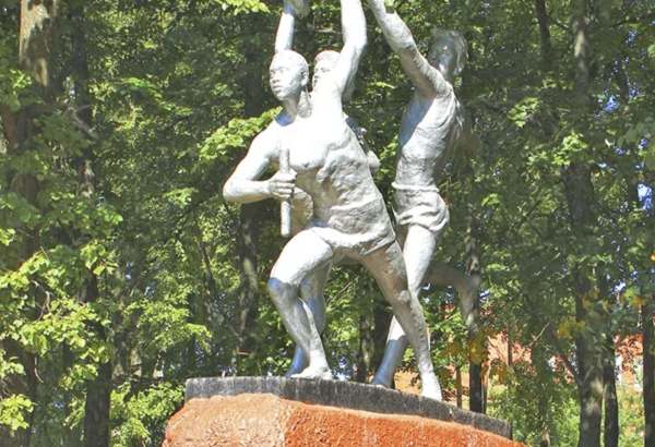 Скульптурная композиция Передача олимпийского огня установлена в память о VI Всемирном фестивале молодежи и студентов. Фигура центрального факелоносца имеет ярко выраженную афроамериканскую внешность, поэтому жители Лакинска, называют скульптурную композицию - негры. Информация