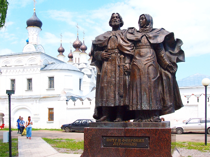 Через 300 лет Петра и Февронию причислили к лику святых, а 8 июля сделали днём их памяти. Теперь памятник святым , расположенный рядом с монастырем, — обязательная программа любой свадьбы в Муроме. А гости города и жители приходят попросить благополучия в личной жизни и любви.
