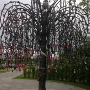 Дерево верности находится в левобережной части набережной Яузы. Оно было установлено в 2012 году. Автор скульптуры - Александр Ващенко. Он изобразил древо высотой 4 метра с раскидистыми ажурными ветвями, склонившимися вниз. Дерево верности, по задумке автора, призвано олицетворять крепость отношений и любви. Для этого А.Ващенко создал кованые листики, на которые влюбленные креп… Информация