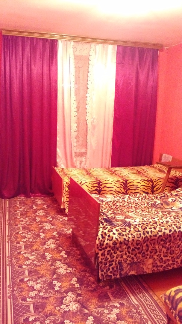 Останавливаюсь здесь второй раз, вынужденно, потому что остальные места все заняты (даже комнаты отдыха на вокзале). В целом атмосфера номера - типичный совок, линолеум на полу, коврик перед кроватью, немножко обшарпанная мебель. Из плюсов - расположение в центре города, рядом магазины, кинотеатр. Из минусов: унитаз раздолбанный, когда садишься, шатается (извиняюсь за подробности), в номере есть только полотенце средних размеров (видимо для рук), то есть предполагается, что после душа надо вытираться либо своим, либо обсыхать естественным путем. Нет микроволновки, зато есть чайник и холодильник. Откуда-то с коридора постоянно шумит вода, и это просто убивает. Когда хочешь спать, любой монотонный звук раздражает.