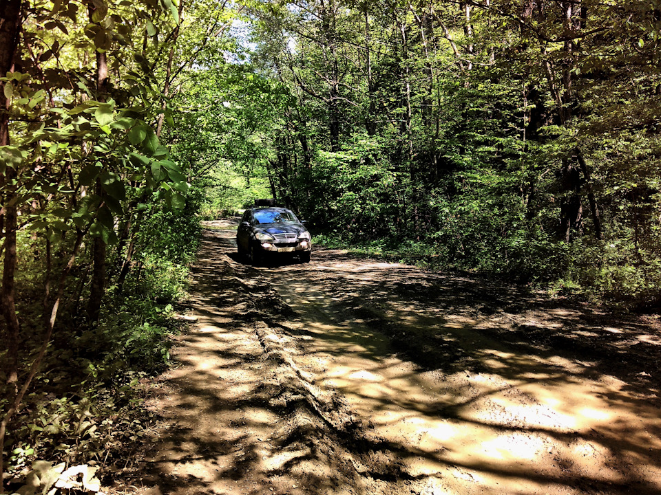 После первого брода будет поворот налево в сторону урочища Поднависла. Основная масса машин едет именно туда. На Большую Фанагорийскую пещеру едем прямо, не сворачивая. Дорога начинает портиться, появляются лужи и грязь.