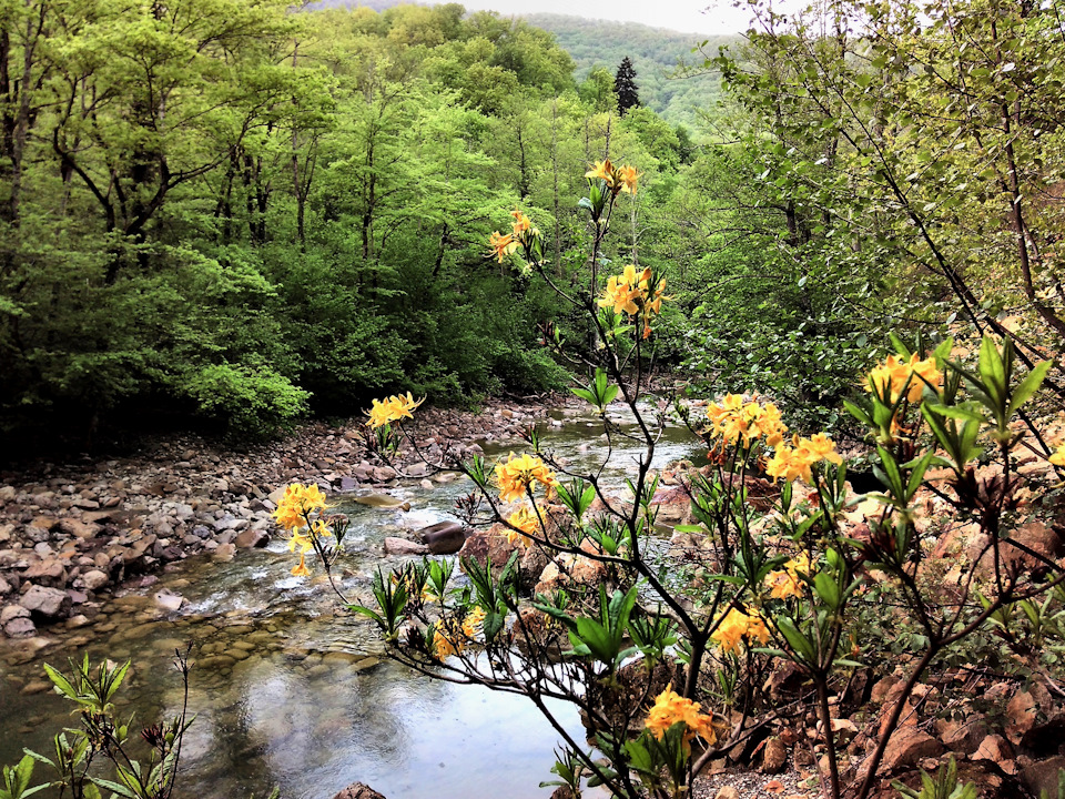 Если же ехать на автобусе, то доезжаем до села Фанагорийское и около 14 км идём по лесной дороге. Нужно будет преодолеть 2 брода через реку.