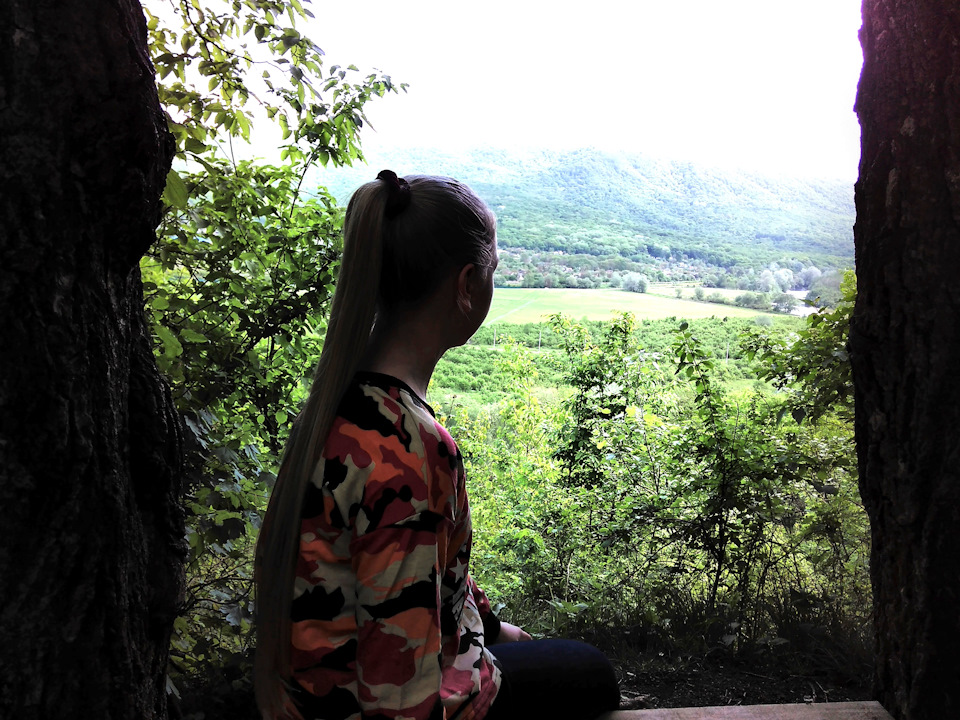 Пройденная дорога привела к «смотровой» на краю обрыва. Горы — это прекрасно, горы весной это прекрасно вдвойне, сочная зелень почти неестественного цвета наполнена пением птиц, таким громким, что приходится громко разговаривать при удалении 3-5 метров друг от друга.