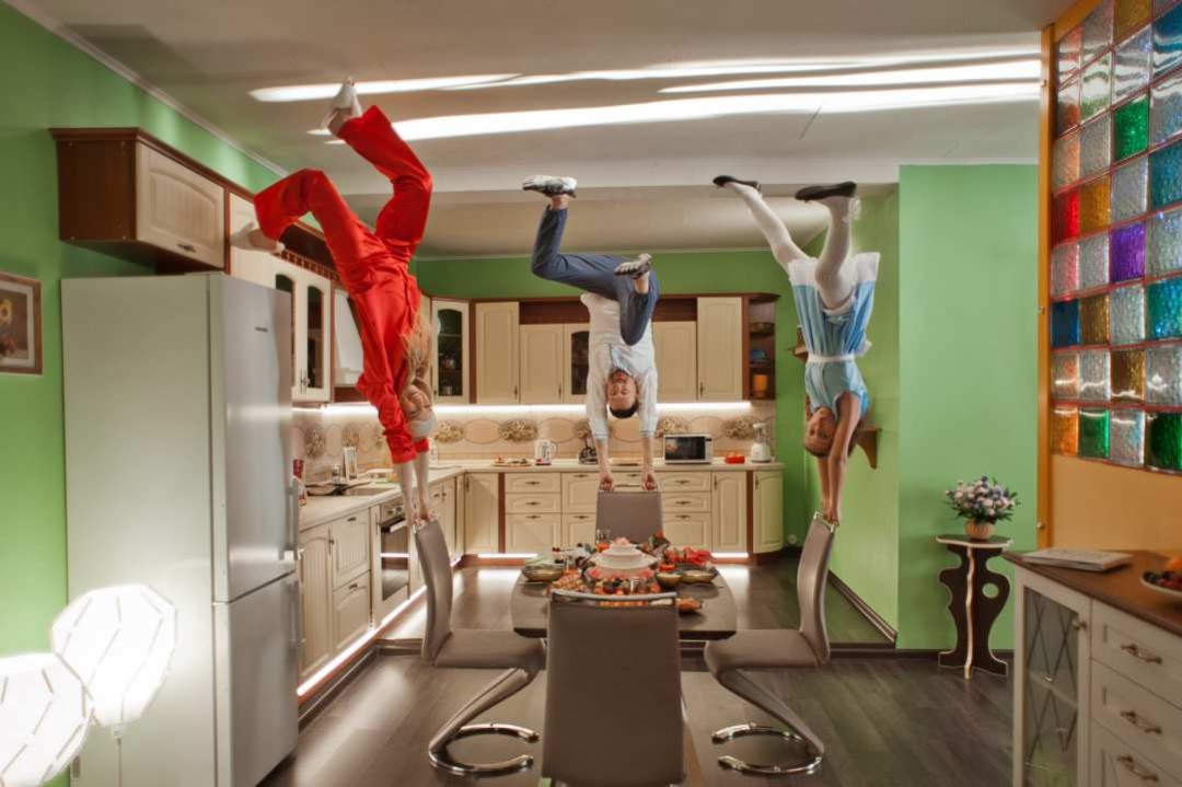 Если в выходные вы с детьми собрались в «Мегу», то загляните в дом, в котором все вверх дном. Не заметить это здание сложно: прямо на парковке у торгового центра стоит музей на крыше. Внутри обстановка соответствующая – вы ходите по потолку, а над головой нависают мебель и посуда.