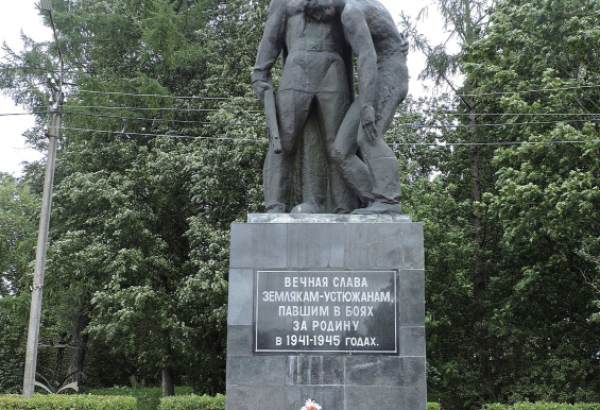 Памятник Землякам-устюжанам, павшим в боях за Родину в 1941-1945 гг. установлен в центре города в октябре 1971 года. В нем замурована капсула со списком погибших в годы Великой Отечественной войны 1941−1945 гг. Перечислены имена 4508 человек. Информация