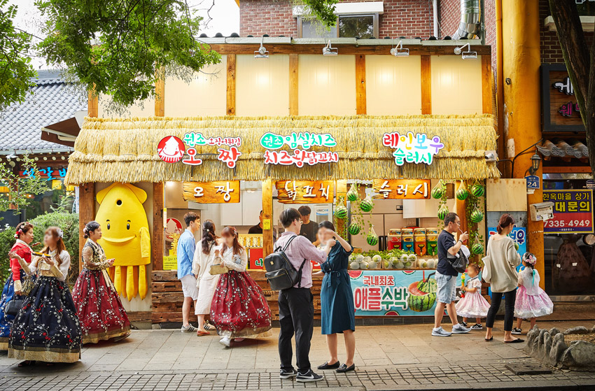 Ещё одно очарование Деревни традиционных домов ханок – это уличная еда. Разновидностей блюд настолько много, что ваше путешествие по Чончжу может и закончиться здесь, если вы попытаетесь попробовать каждое лакомство. Торговые лавки с едой выстроены в ряд, здесь можно отведать популярный в Чончжу чокопай, манду с креветкой, шашлык из курицы, разноцветный слаш, лепёшки хотток, фруктовое пиво и другую еду на любой вкус. Обратите внимание, что во многих лавках можно расплачиваться картой.