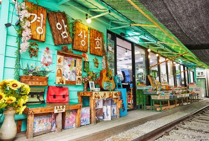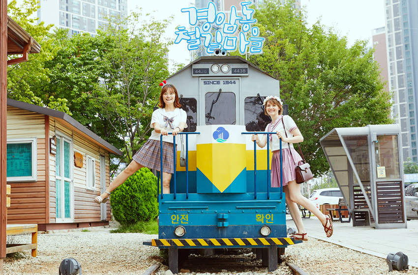 В районе Кёнам-дон расположена деревня, протянувшаяся вдоль железнодорожного пути, где буквально на каждом шагу можно увидеть следы современной истории. В 1944 году данный участок железной дороги длиною 2,5 км соединял бывшую станцию Кунсан с нынешним заводом по производству бумаги Paper Corea, но в 2008 году движение по нему было полностью прекращено. Сейчас это место превратилось в одну из достопримечательность Кунсана, которую украшают настенные рисунки и милые магазинчики. Здесь вас ожидает много интересных занятий: можно взять на прокат школьную форму, прогуляться в ней по деревне и сделать памятные снимки, а также поучаствовать в приготовлении сладкой ириски и др.