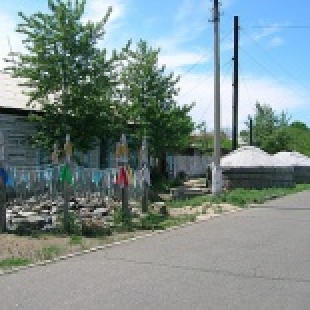 В переводе словосочетание означает «глиняный дом». Сегодня это развалины крепости, которая была построена еще в VIII веке. Расположен объект на острове в середине озера Тере-Холь.