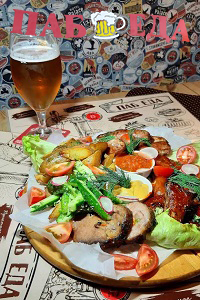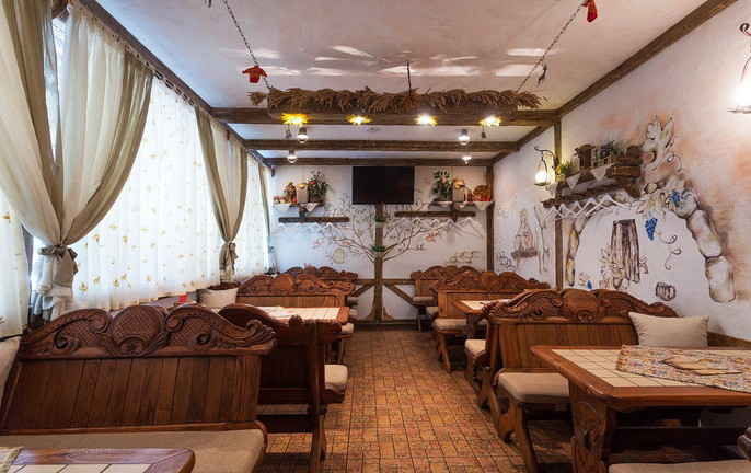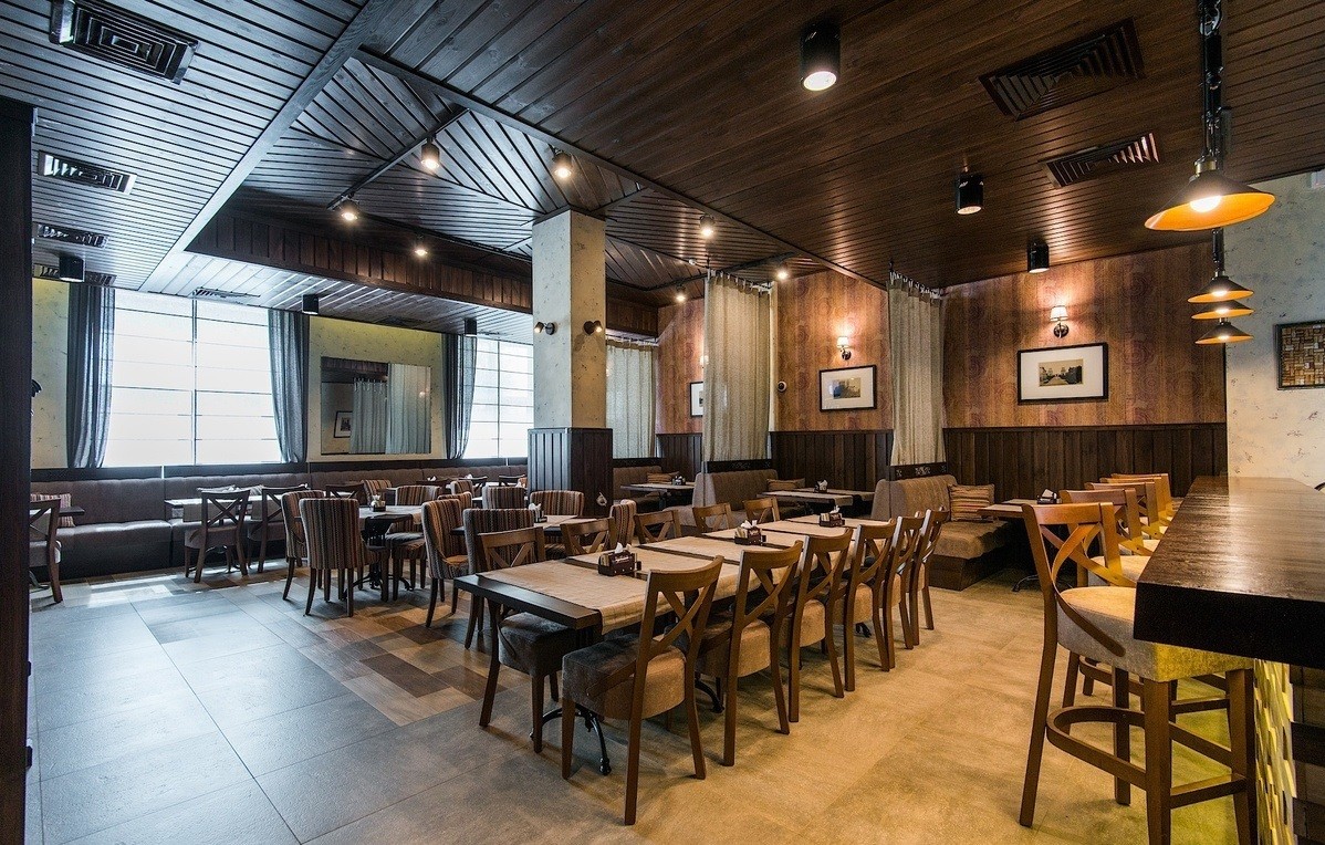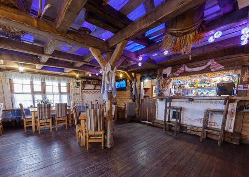 Уютный ресторан с охотничьим интерьером. Два зала на 50 и на 20 персон. Обеденное меню с 11:00 до 16:00.