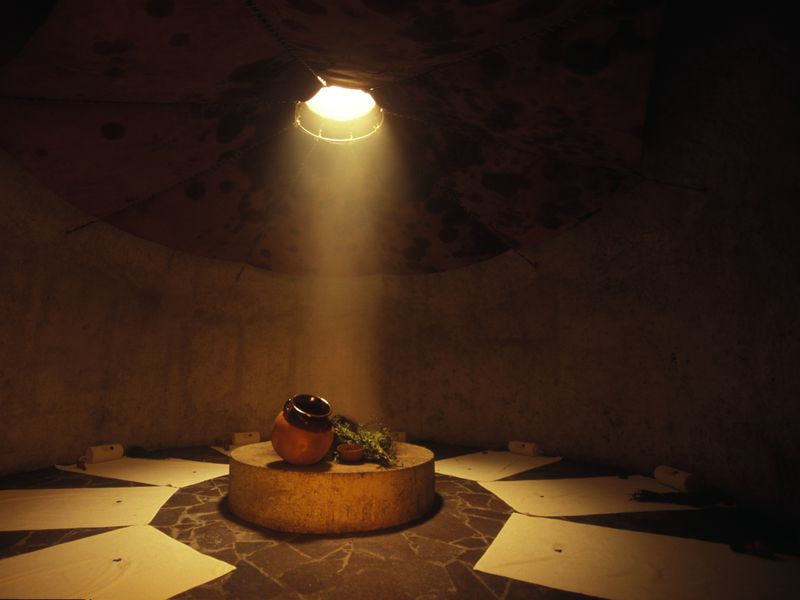 Все это есть в Темаскале – некоторой разновидности индейской бани, в “доме горячих камней”. В котором совершенно невозможно находиться, где-либо кроме как здесь и сейчас. Этому ритуалу тысячи лет и в схожем виде он существует у всех индейских народностей обеих Америк.