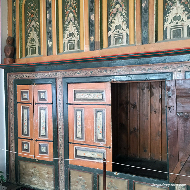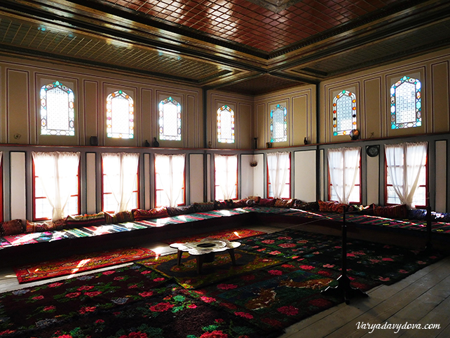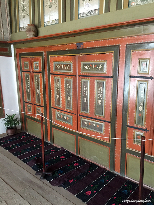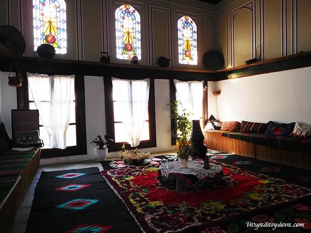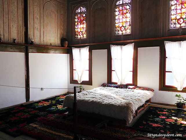 Два верхних деревянных этажа были жилые. Сейчас тут частный музей. Туристам показывают просторные комнаты с красивыми окнами и коврами.