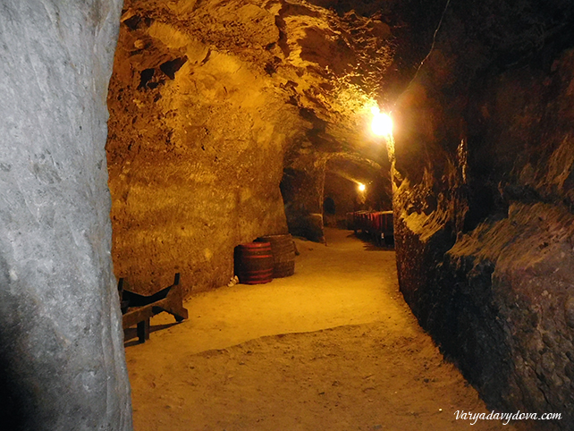 Точной информации об их протяженности нет: кто-то называет цифру 80 метров, кто-то - 150 м. В избе помещается до 300 тонн вина в бочках, самая большая из которых - 12,5 тонн. Ходят слухи, что в 1916 году самая большая бочка весила около 30 тонн.