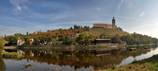 Если, находясь в городе Мельник в Чехии, вы захотите сделать уникальные фото, то обойдите ренессансный замок с обратной стороны. Отсюда открывается потрясающий вид на место слияния двух рек и виноградники.