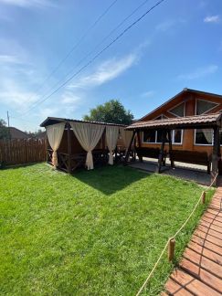 Новая база отдыха с двумя теплыми кедровыми беседками и большой зеленой территорией.