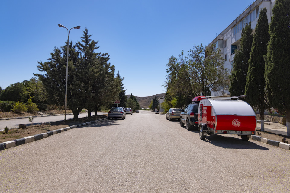 Населенный пункт выглядит чистенько, по-европейски — хороший асфальт, уютные улочки с растущими вдоль соснами и кипарисами. Я снова уходил в воспоминания и только вывески на зданиях на русском языке мне напоминали мне, что я в России.