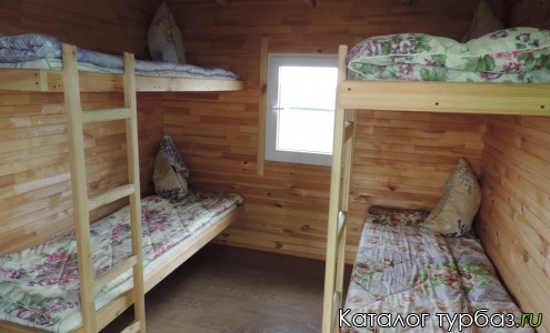Предлагаются двухместные и четырехместные домики с террасами. Жилые постройки базы отдыха выполнены из экологически чистых материалов – дерева кедра и сосны.