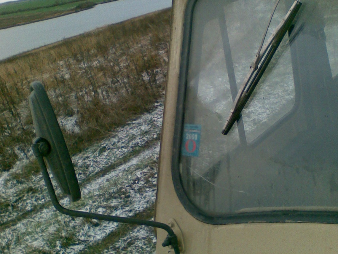 Встал на машину, следя через бинокль за уткой, и по телефону говорю отцу куда она плывет. Утку он поймал, звонит мне, поделился радостью и просит подъехать за ним. УАЗ не заводится, стартер накрылся. Толкать не вариан, встал на кочку да и машина тяжелая. Вот нравится мне в военных русских машинах, что есть такая палочка, которой возможно завести машину. Минут 20-30 мы пытались завести ею, после сделали проще, на первой скорости мы начали поворачивать машину в сторону плотины. Отец сел за руль и начал спускаться к воде, таким образом УАз завелся).