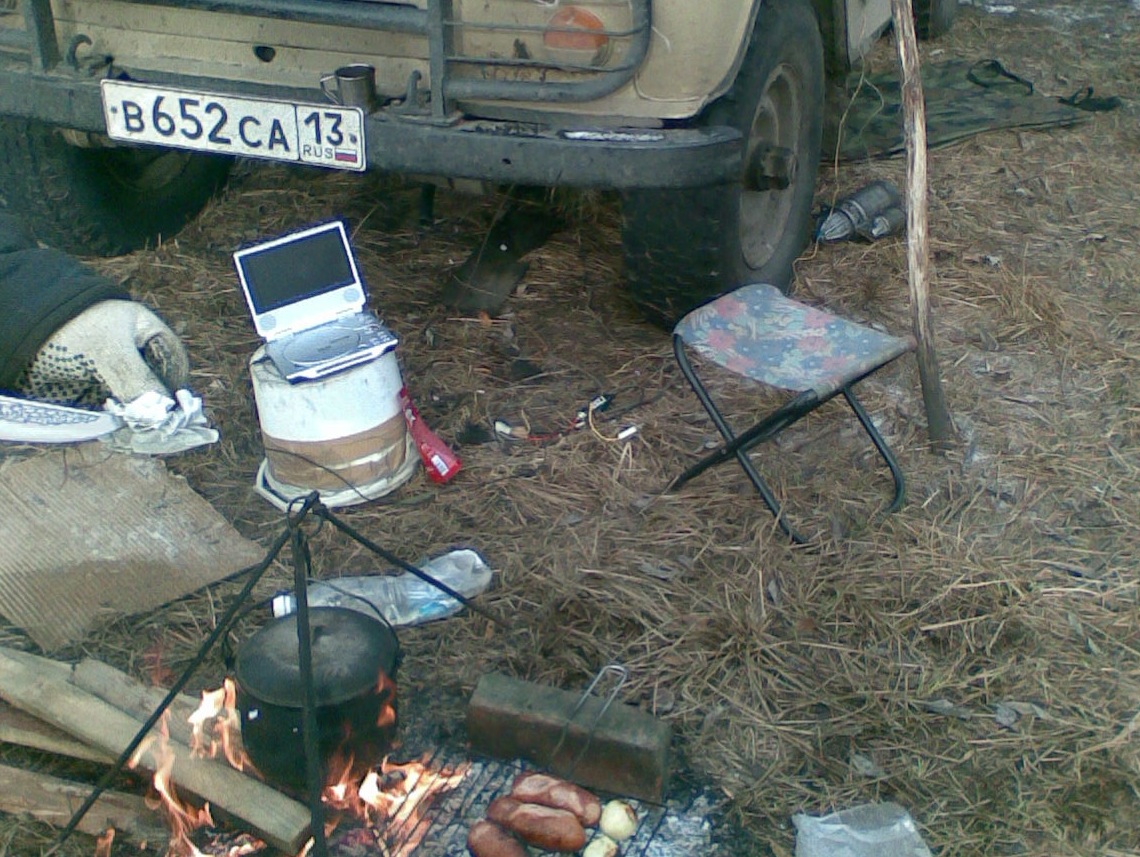 мы спокойно приехали на место, поохотились, сделали еду, разобрали стартер, посидели у костра, поговорили на различные темы…