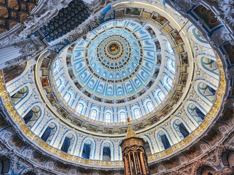 - Воскресенский собор. Доминанта внутренней части сооружения – потрясающей красоты многоярусный купол, выполненный в бело-голубых тонах, украшенный изразцами, фресками и лепниной. В храме можно набрать воды из святого источника и привезти домой.