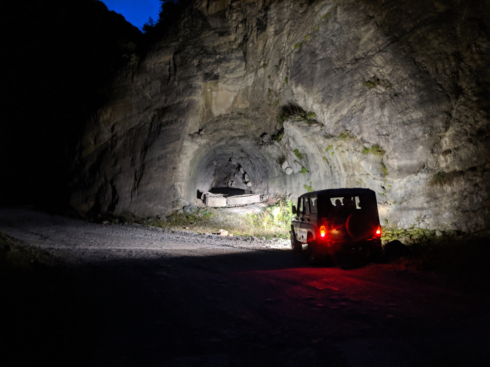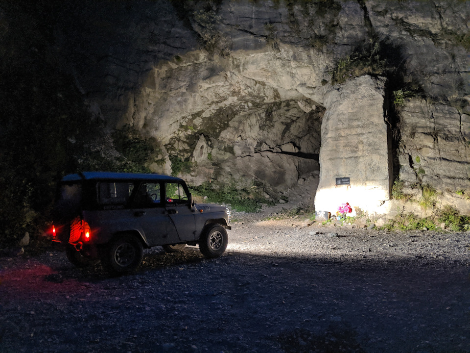 Выезжали через Кармадонское ущелье. Жалко, что по ночи, но вертикальные стены все равно впечатляли. Немного полазил по заваленным и не очень туннелям.