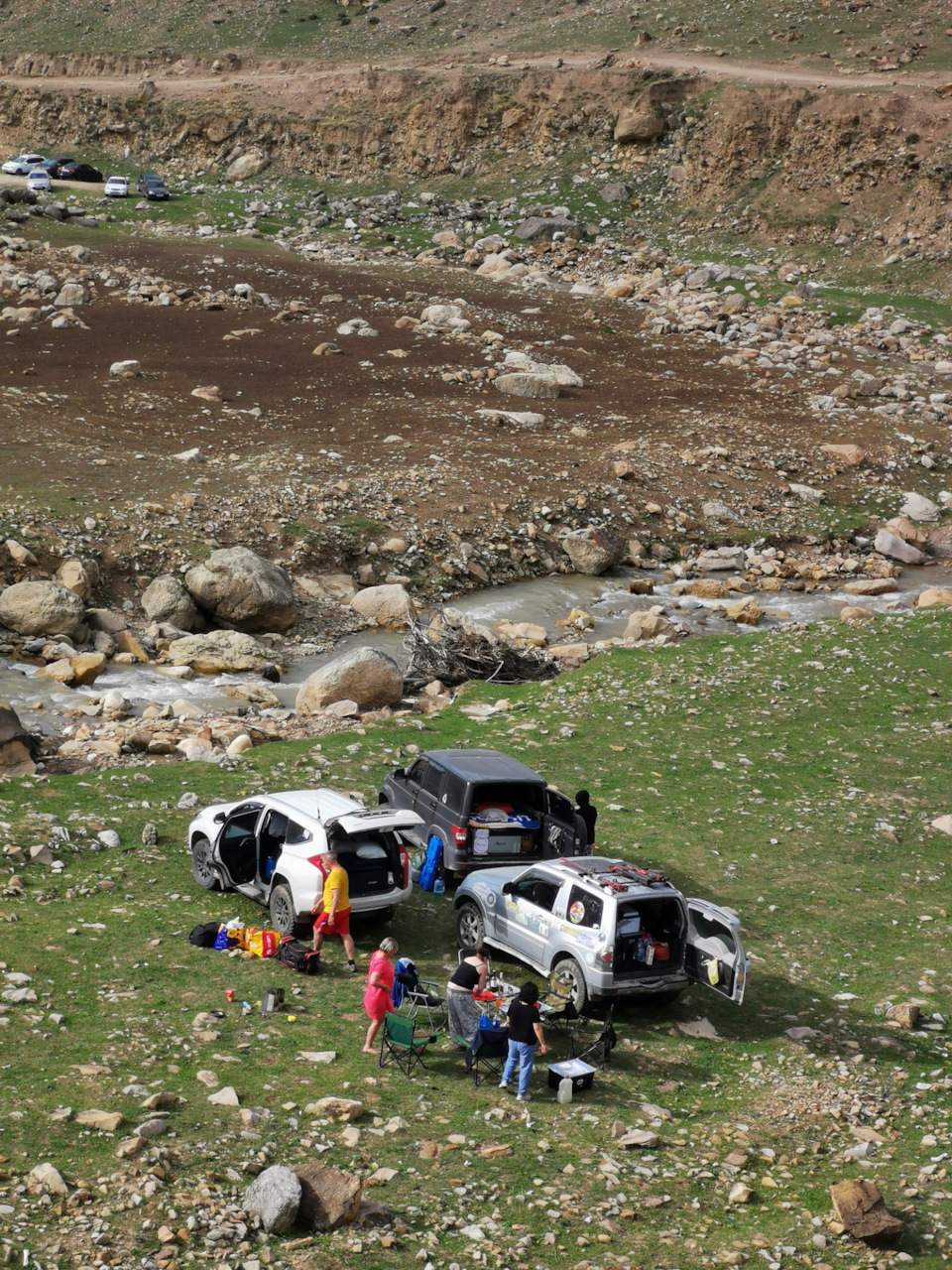 Взяли бешенный ритм. Но обед по расписанию, встали на берегу горной речки Аварское койсу, спрятавшись от ветра за машинами, сварили кускус с тушенкой конины. И дальше за достопримечательностями.