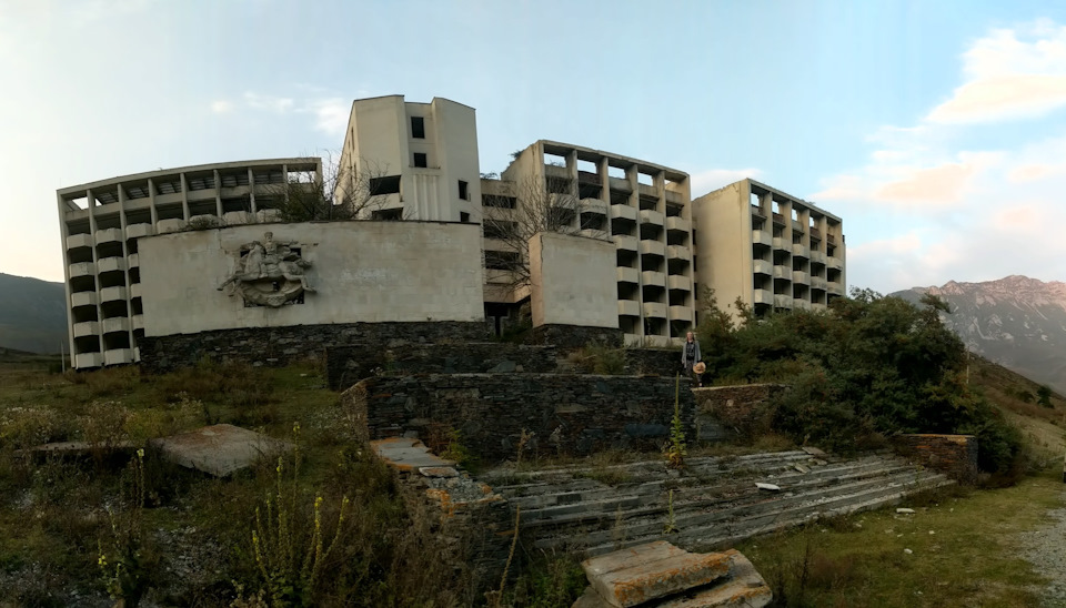 Дальше в Кармадоне есть заброшенный отель. И он даже показался более интересным. Захотелось полазить, но вход в два слоя завален навозом разной степени свежести, не пройти. :)