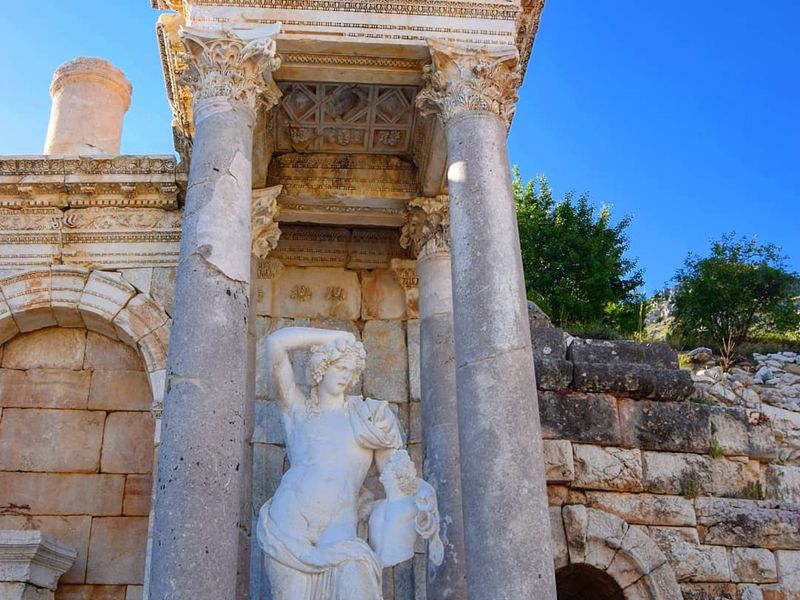 Вы увидите главные достопримечательности древнего города: центральную площадь, амфитеатр и действующий фонтан Антонинлер, построенный во времена Римской империи. Оцените сохранившиеся образцы ажурной резьбы по камню и античные барельефы. Раскроете, как Сагалассос связан с Александром Македонским, на какую эпоху пришелся его расцвет и что положило конец его развитию.