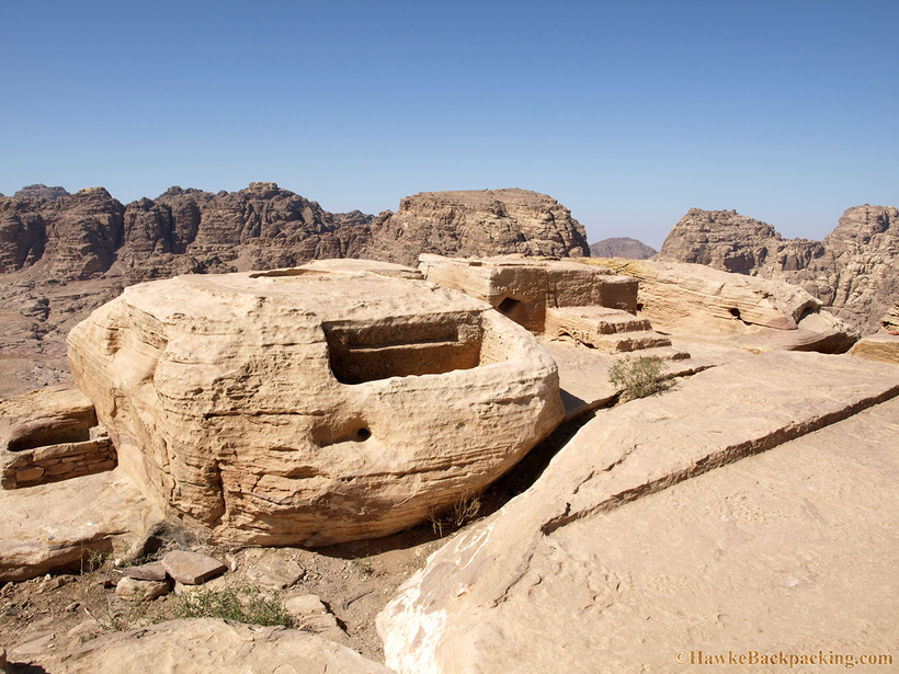 Верховное место жертвоприношений – платформа на вершине горы, на которой находятся сложные скальные алтари, используемые для жертвоприношений. Оттуда каждый может увидеть большую часть Петры. Превосходный вид, но может быть холодно и ветрено. По пути вниз, двигаясь по задней стороне горы, можно встретить много интересных гробниц и резьбу, которым никогда не увидеть обычным туристам. Путешествие туда и обратно может, в общем, занять 1,5-2 часа. Немногие гости Петры идут назад по задней стороне горы, потому что обнаружить начало тропы не так-то и просто и лучше о ней спрашивать кого-нибудь знающего.
