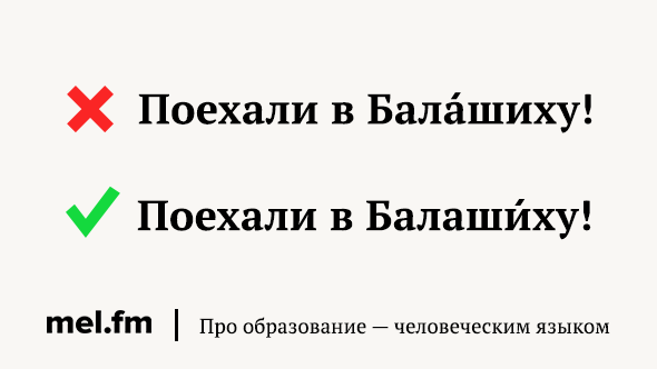 Нет, ну а что! Отдыхать можно не только на Бали или в Паттайе, но и в Балашихе. Гид по знатным местам отдыха мы составлять не будем, а про произношение расскажем. Тем более проблема серьёзная — даже Владимир Путин не уверен в произношении. Большинство людей говорят БалАшиха — просто потому, что так привычнее звучит. Хотя сами жители Балашихи протестуют против такого и отстаивают ударение на предпоследний слог — БалашИха. Словари, кстати, на их стороне. По крайней мере, словарь трудностей русского языка для работников СМИ М. А. Штудинера и словарь собственных имён Ф. Л. Агеенко дают именно такой вариант и называют его литературным.