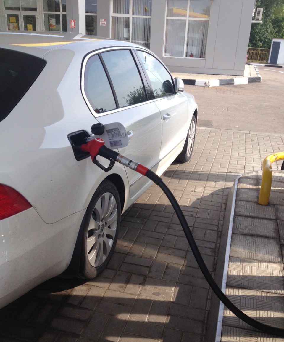 Платим и тут же останавливаемся на заправке на процедуры