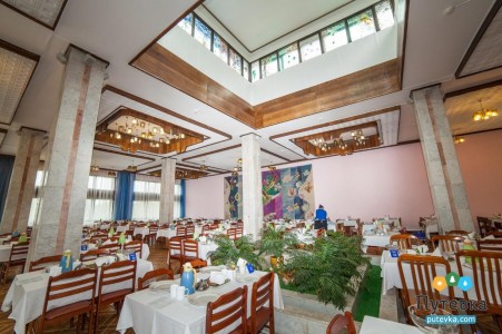 Питание: 3-разовое по заказному меню. В санатории разработаны и утверждены следующие пищевые рационы (диеты): № 15, № 10с, № 9, № 8, № 5, № 5п, № 1, № 15-Д (детская), объединенные в систему стандартных диет.