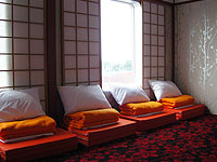 Вот это конечно странно, на таком большом пароме очень мало сидячих мест. Многие пассажиры расходились по каютам. Я видел одно и двухместные каюты, но не в привычном нам понимании, а что то типа капсул - кровать в нише, либо двухъярусная кровать. И просто пустые комнаты, где находишь место, там и падаешь.