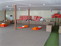 - большая комната разделена на секции, 2 больших напольных кондиционера, туалеты мужские и женские – 3 кабины, душ – 2 кабины.