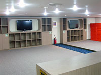 - одна большая комната разделена на секции для групп по 14-18 человек, в комнате большой ТВ;