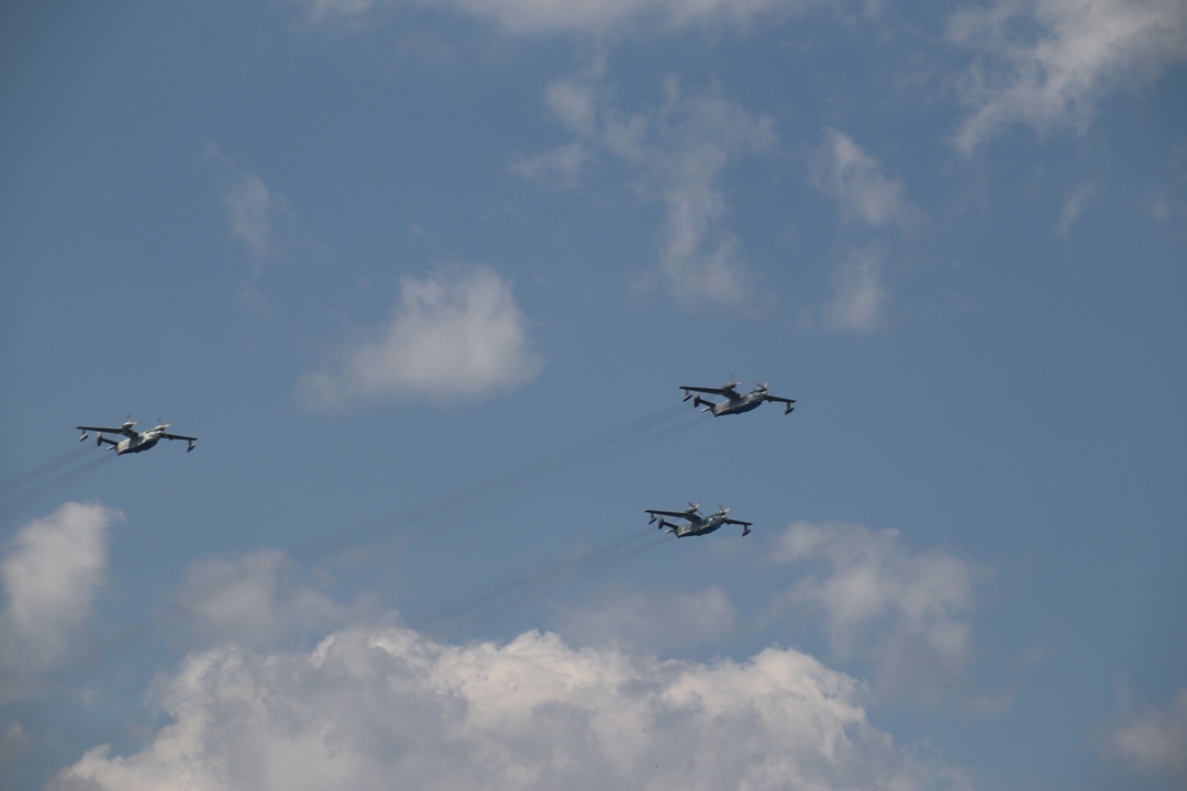 Полет авиационных групп боевого состава ВМФ России в Санкт-Петербурге начнется ориентировочно в 11:00. Вертолеты (Ка-27, Ка-29 и Ка-52) и самолеты (Бе-12, Ан-140 и Ан-72) будут пролетать по той же линии, что и проплывали корабли.