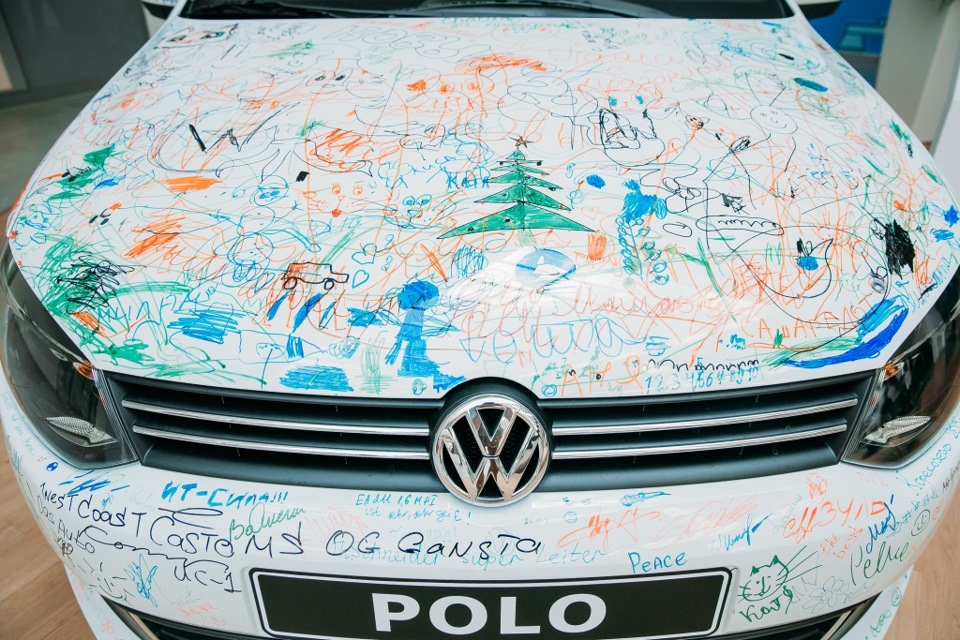 дети работников завода разрисовали его маркерами, затем его отправили обратно в малярный цех и покрыли лаком) не сотрется)