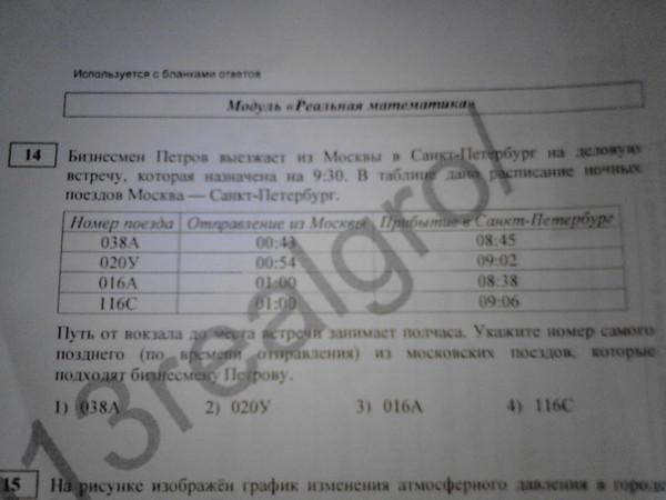 Путь от вокзала до места встречи занимает полчаса. У кажите номер самого позднего (по времени отправления) из московских поездов, которые подходят бизнесмену Петрову.